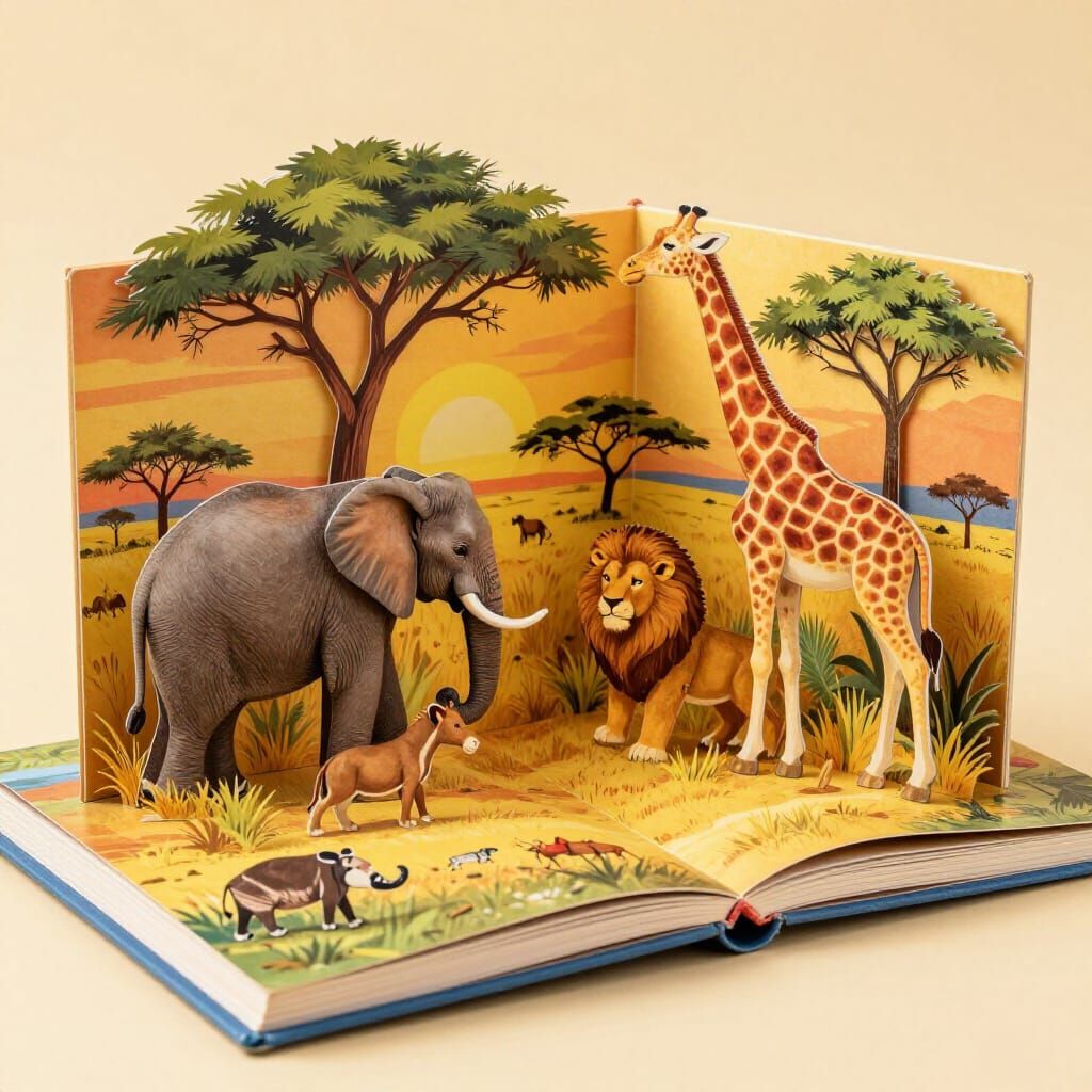 Design unique safari scenes in a popup book style with our easy-to-use AI generator. Free and fun!