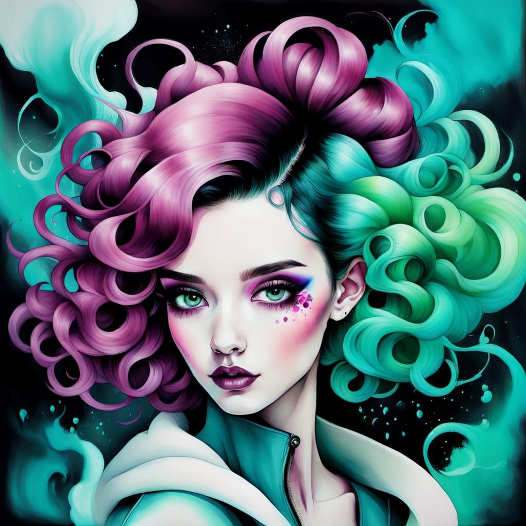 This image showcases a mesmerizing fusion of neon colors and liquid-like textures, reminiscent of an airbrushed dreamscape.