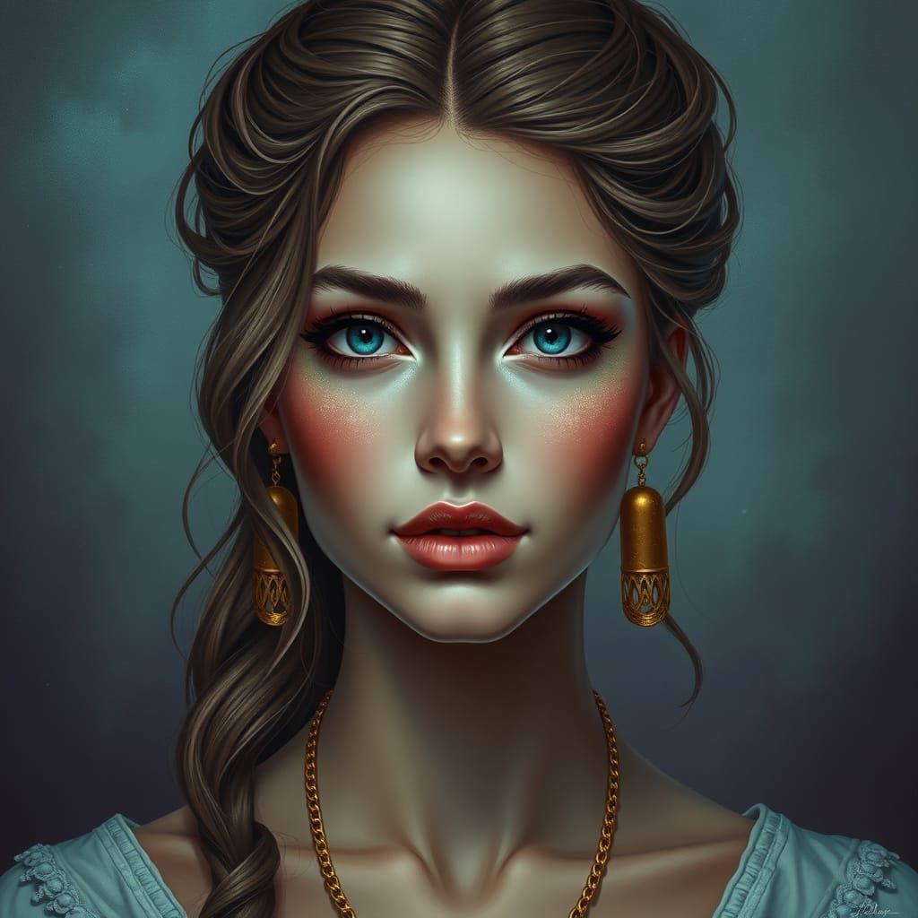 This image shows a realistic portrait of a woman embodying the astrological sign Libra. The artwork captures the essence of balance and harmony associated with the zodiac.
