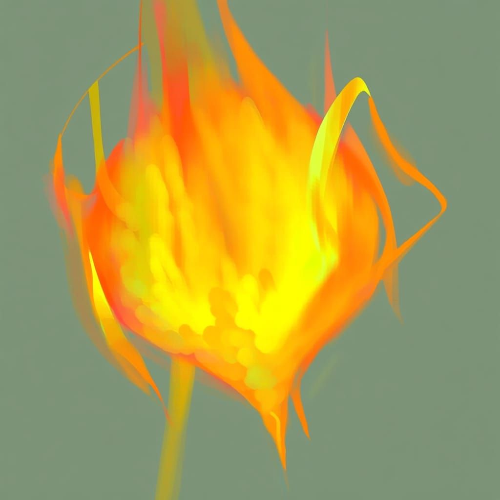 This prompt came from me uploading one of my photos (of a flower, probably Tithonia rotundifolia) to an AI that will give you image descriptions, and asking the AI to describe the main subject of the image as if it were a painting, without reference to flowers or plants or leaves or gardens.