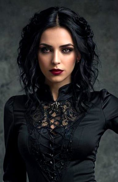 A striking and hyperrealistic full-body portrait of an gothic woman wearing a tight dress, polished, fantasy