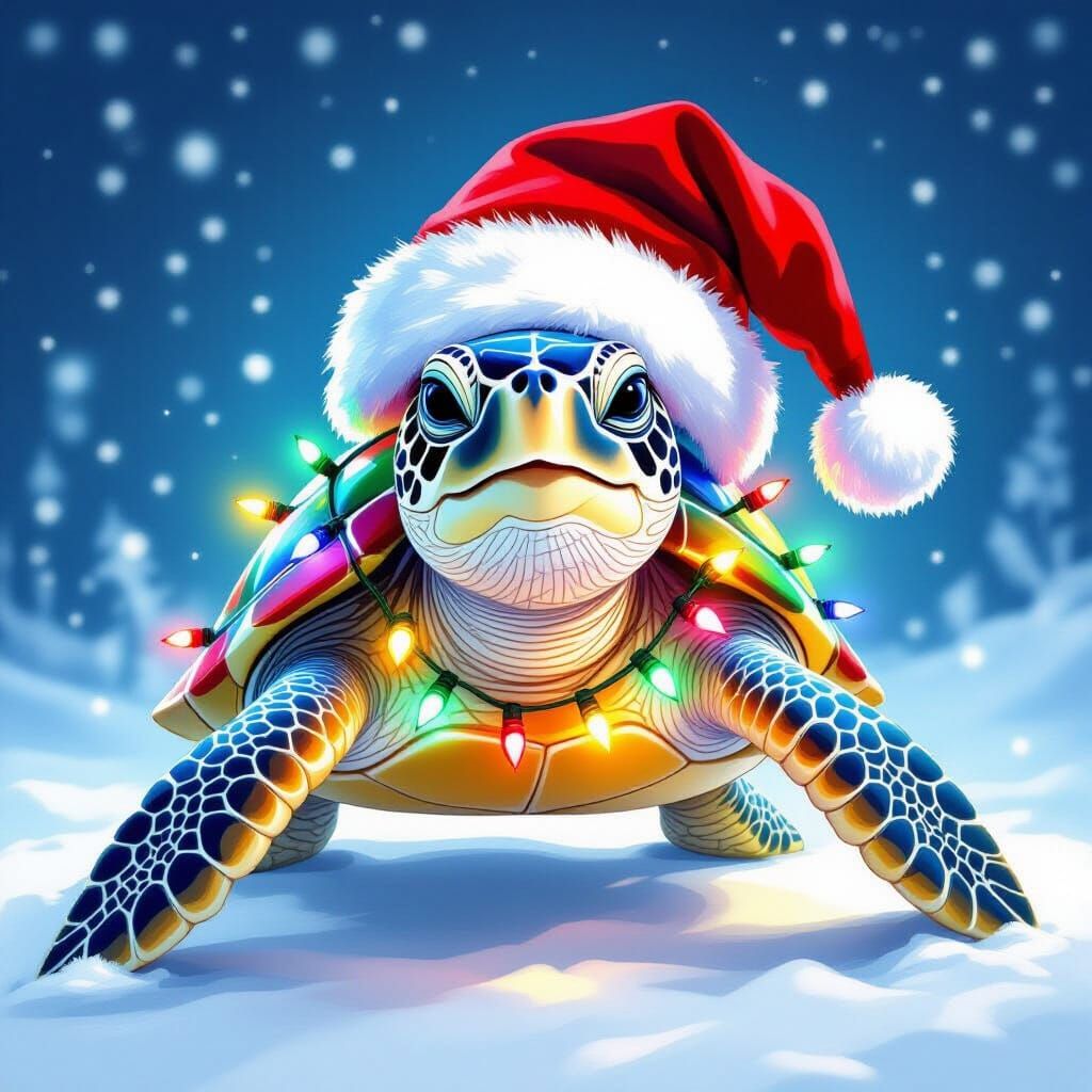 Generate your own unique sea turtle images with Santa hats and Christmas lights for free. Easy and fun AI creation!