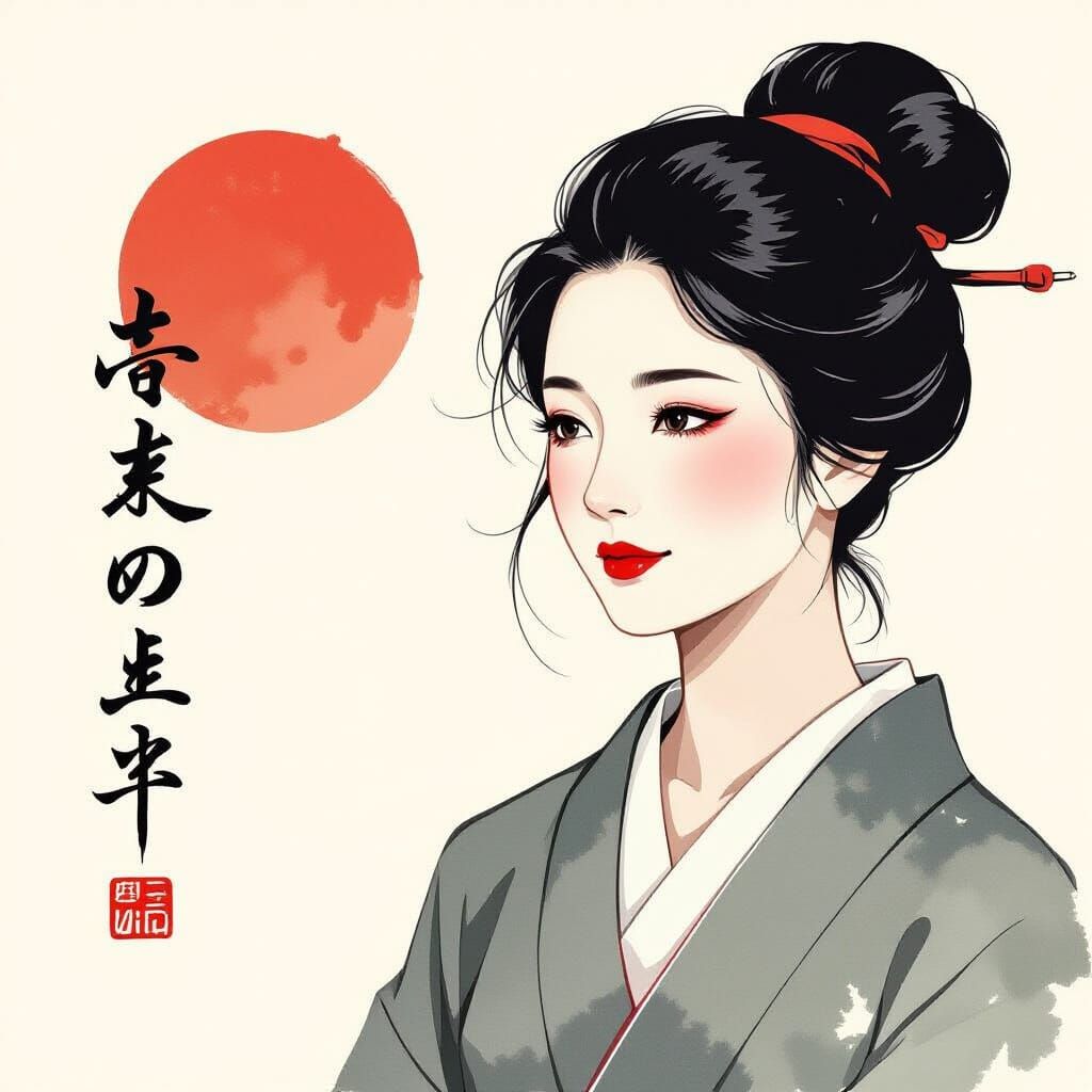 This image showcases minimalist illustration focusing on pure form with clean, intentional lines. The style evokes Japanese ink wash painting with dynamic brushwork and strategic use of negative space.