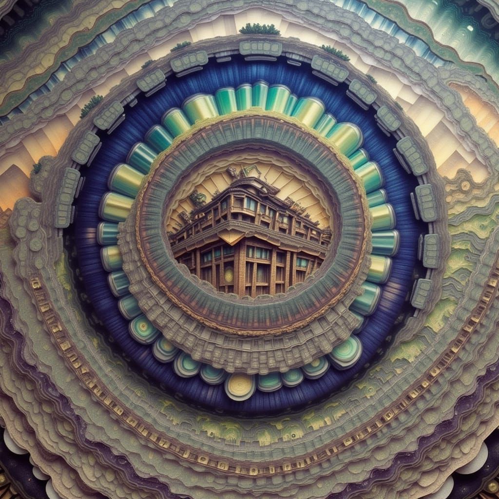 This image showcases an abstract stone cottage, rendered with intricate detail and ornate features, creating a unique architectural vision.
