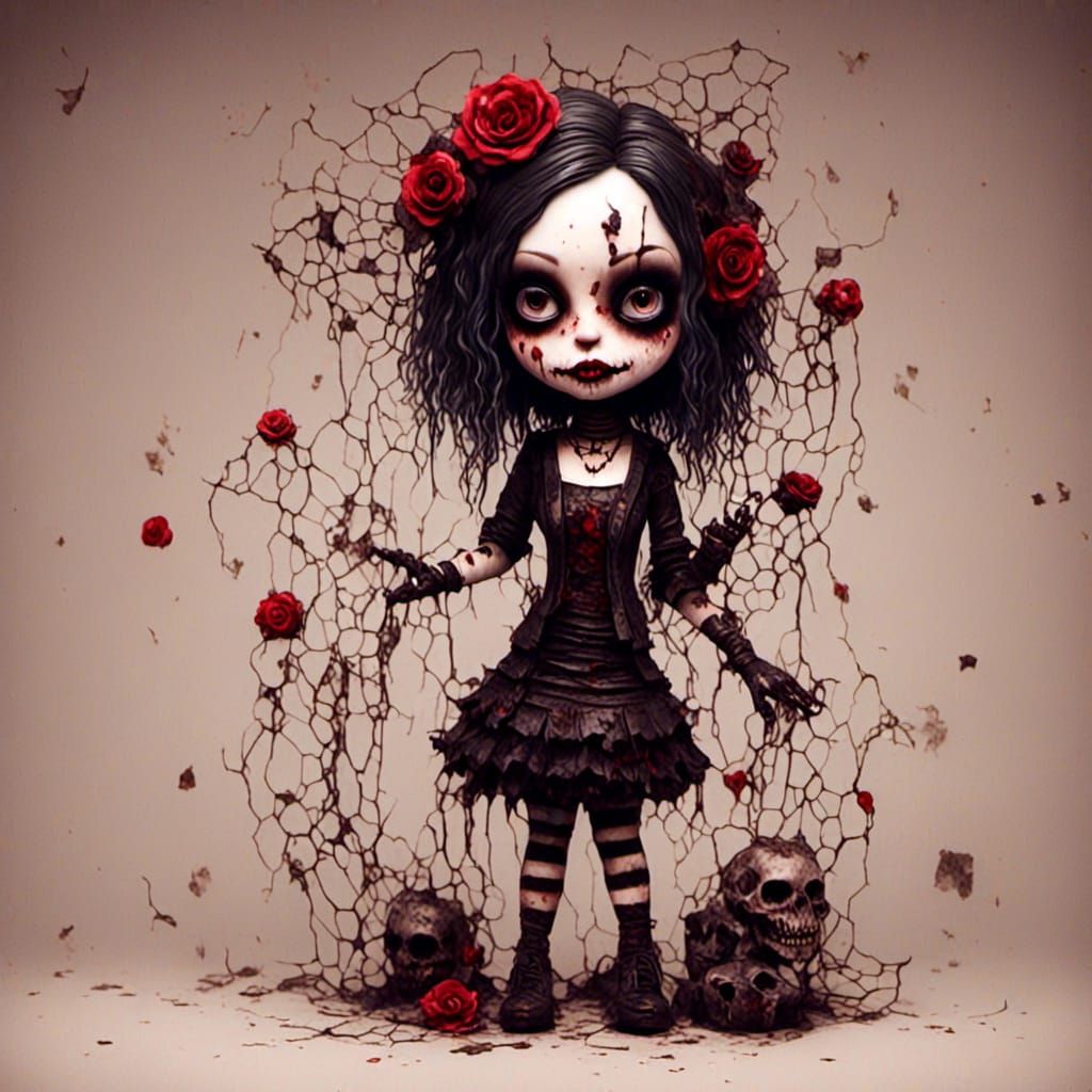 This image shows a full-bodied Latina pinup woman in a Gothic style. The artwork evokes a retro rockabilly aesthetic, blending macabre and enigmatic elements in its design.