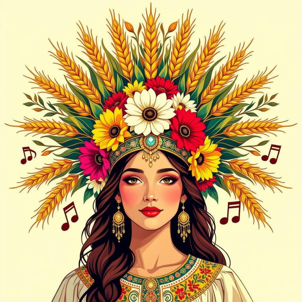 Design your own vibrant headdresses for agriculture, fertility, or music using our free and easy AI image generator.