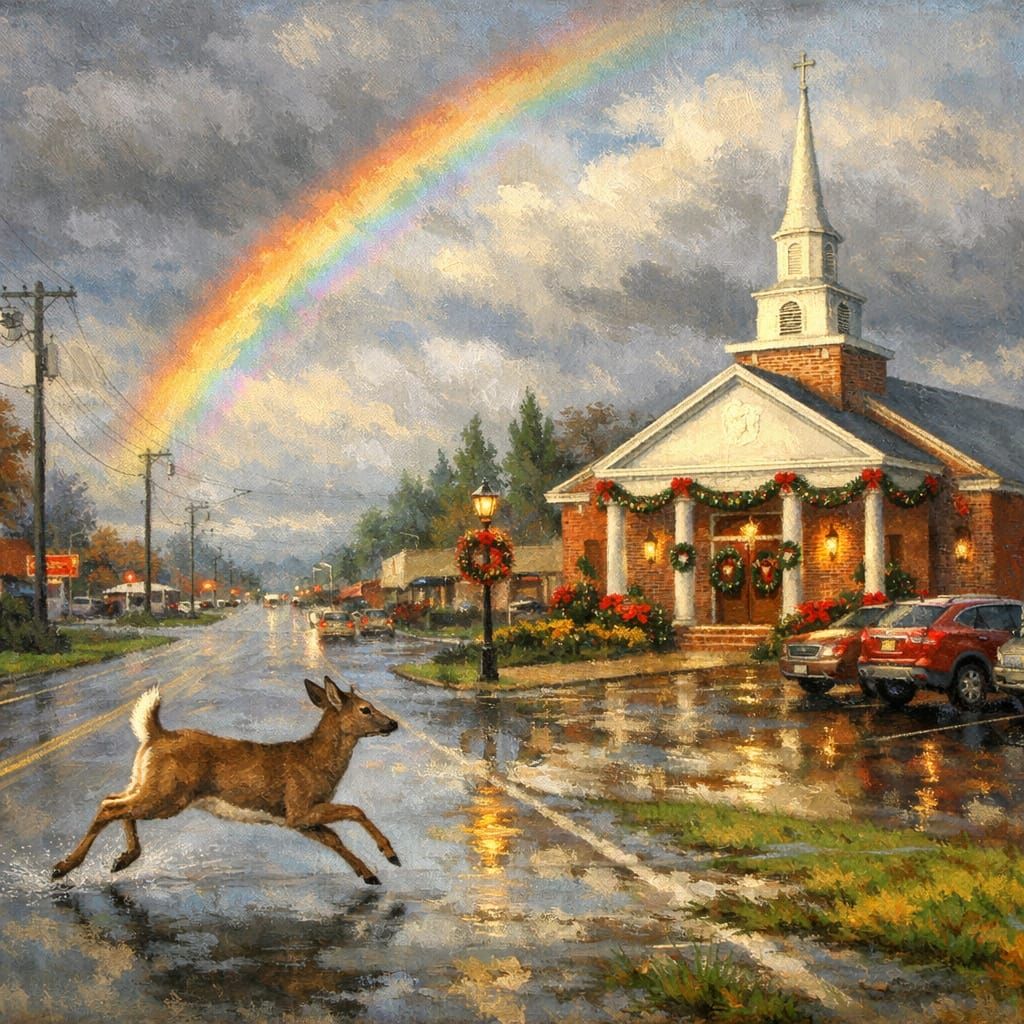 Actually saw a Christmas rainbow this morning! And my partner managed to brake in time to avoid hitting the white-tailed deer that ran in front of the car. It's been a good day so far!