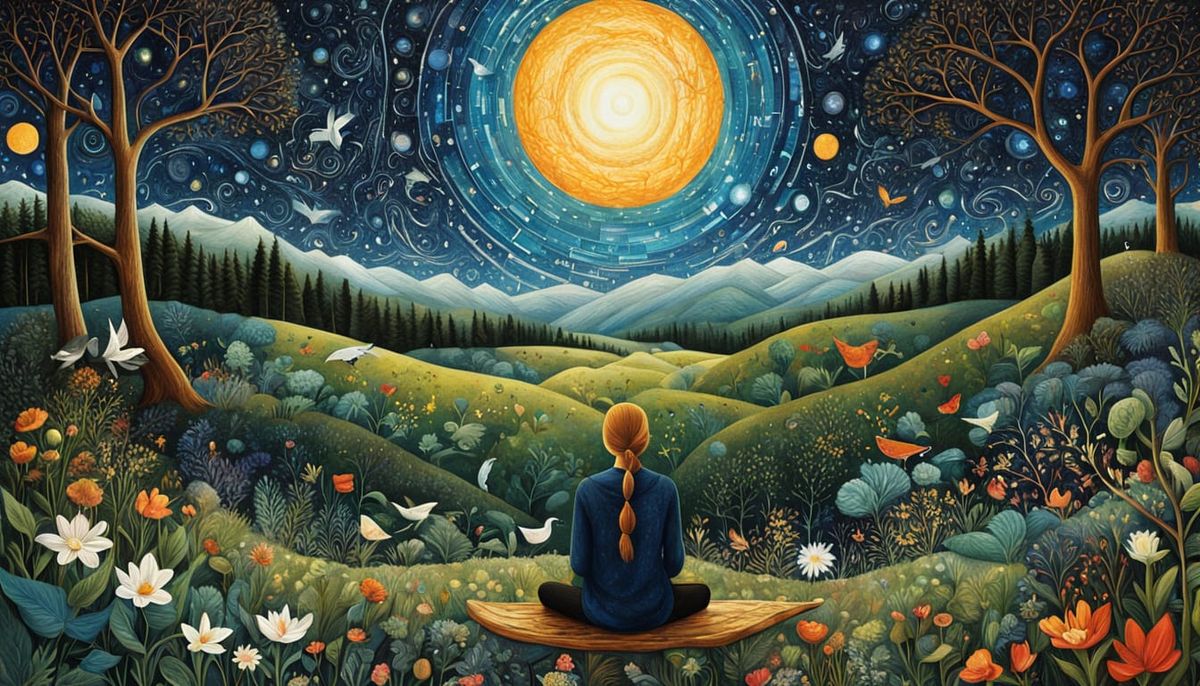 This vibrant digital artwork is a powerful celebration of human strength and resilience, blending elements of nature, music, and abstract design in a mesmerizing collage that encourages viewers to follow their dreams and seek authenticity in a chaotic world.