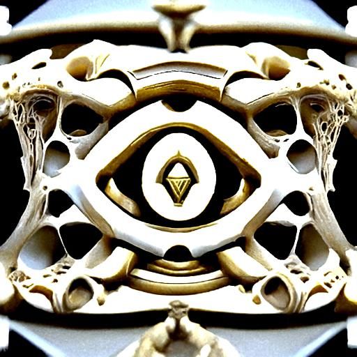 A detailed ivory carving reveals a mind of sacred geometry, featuring an eye of the universe. This image showcases a surreal and intricate design.