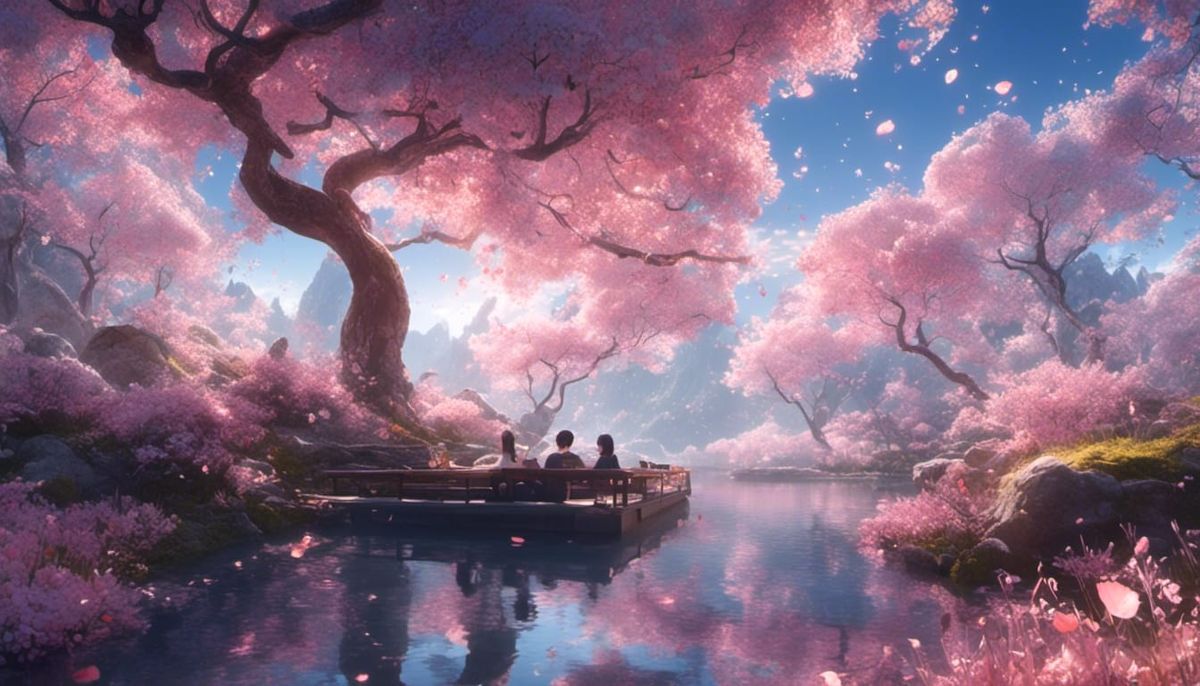 A serene image of a peaceful natural world, evoking relaxation. The artwork is highly detailed, inspired by anime and 3D art, and rendered in breathtaking 8K resolution.