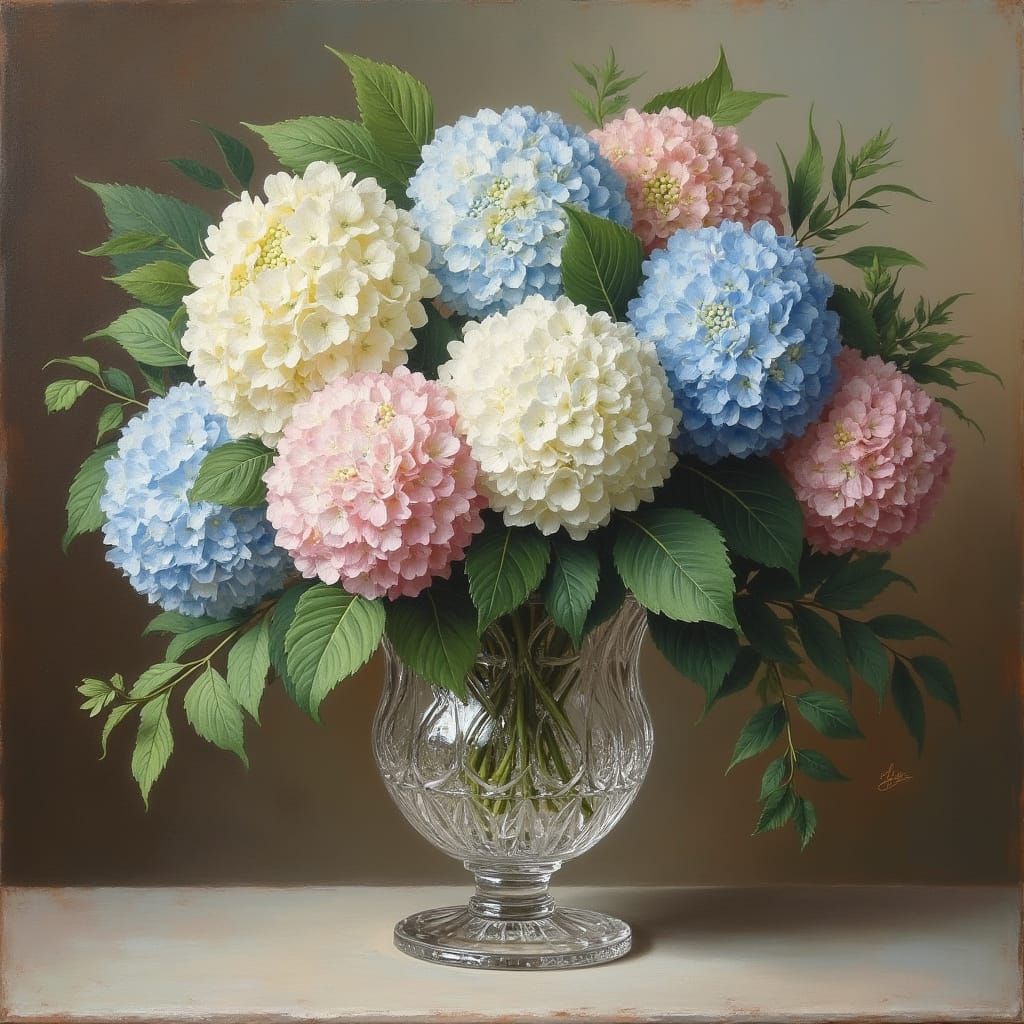 Easily generate your own oil painting-style images of beautiful hydrangeas with our free AI image generator