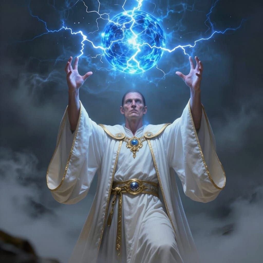 Wizard in Robes of the Arch Magi, summoning a lightning elemental.