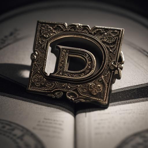 This image shows the letter D rendered with intricate details and a hyperrealistic style. The composition is sharp and cinematic, creating a moody and atmospheric effect.