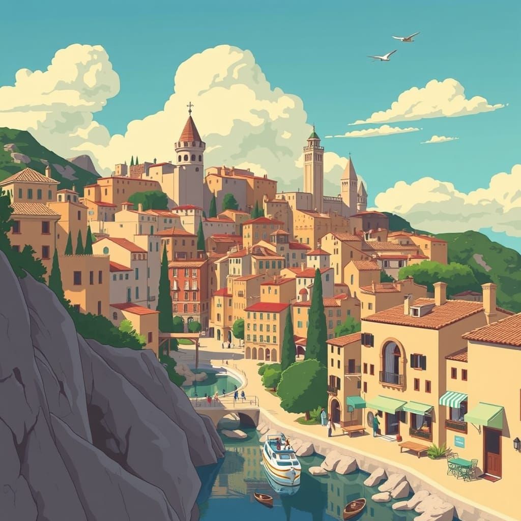 Easily design your own Mallorca cityscapes in the style of Studio Ghibli with our free AI image generator
