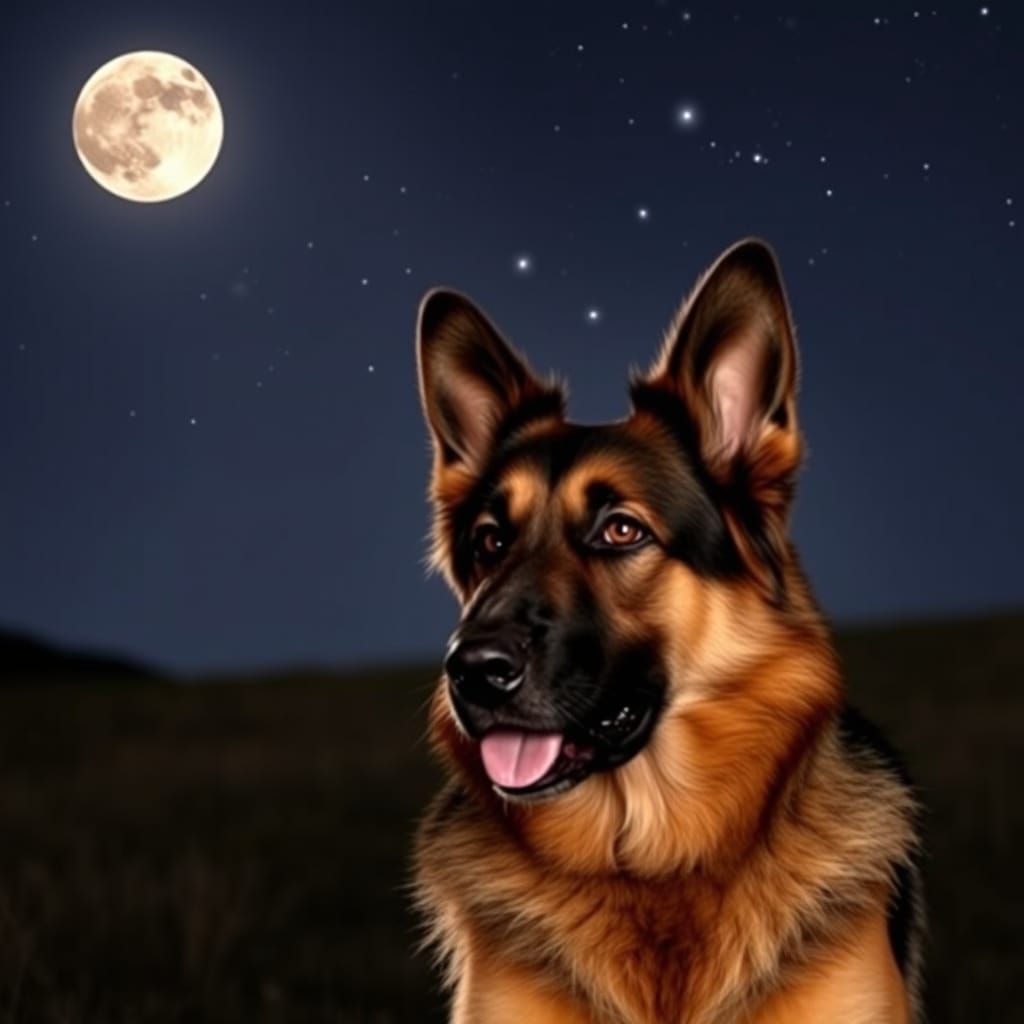 Generate your own heartwarming German Shepherd images under the stars, for free and easily.