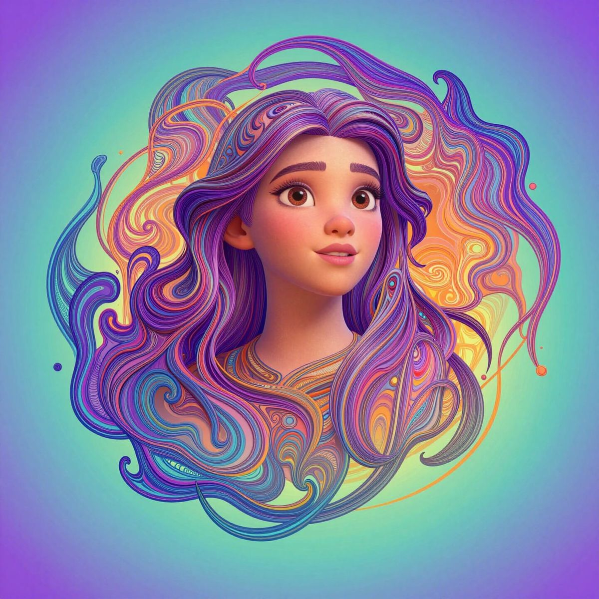 slightly denser curves, Pixar, Disney, concept art, 3d digital art, Maya 3D, ZBrush Central 3D shading, bright colored background, radial gradient background, cinematic, Reimagined by industrial light and magic, ...