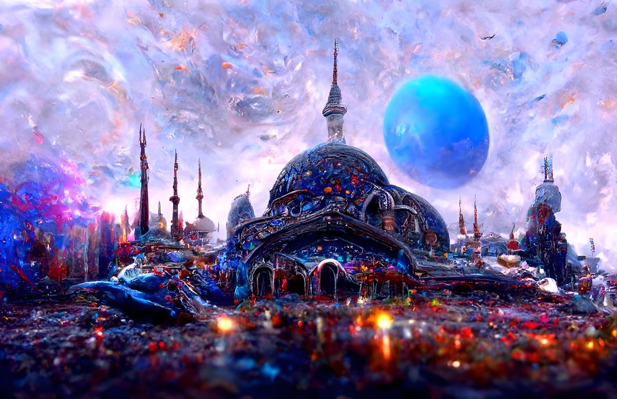 beautiful magical ethereal futuristic cosmic galactic temple in space