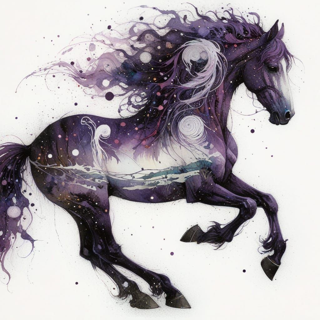 Easily generate your own whimsical horse images with our free AI image generator, featuring watercolor effects and vibrant colors.