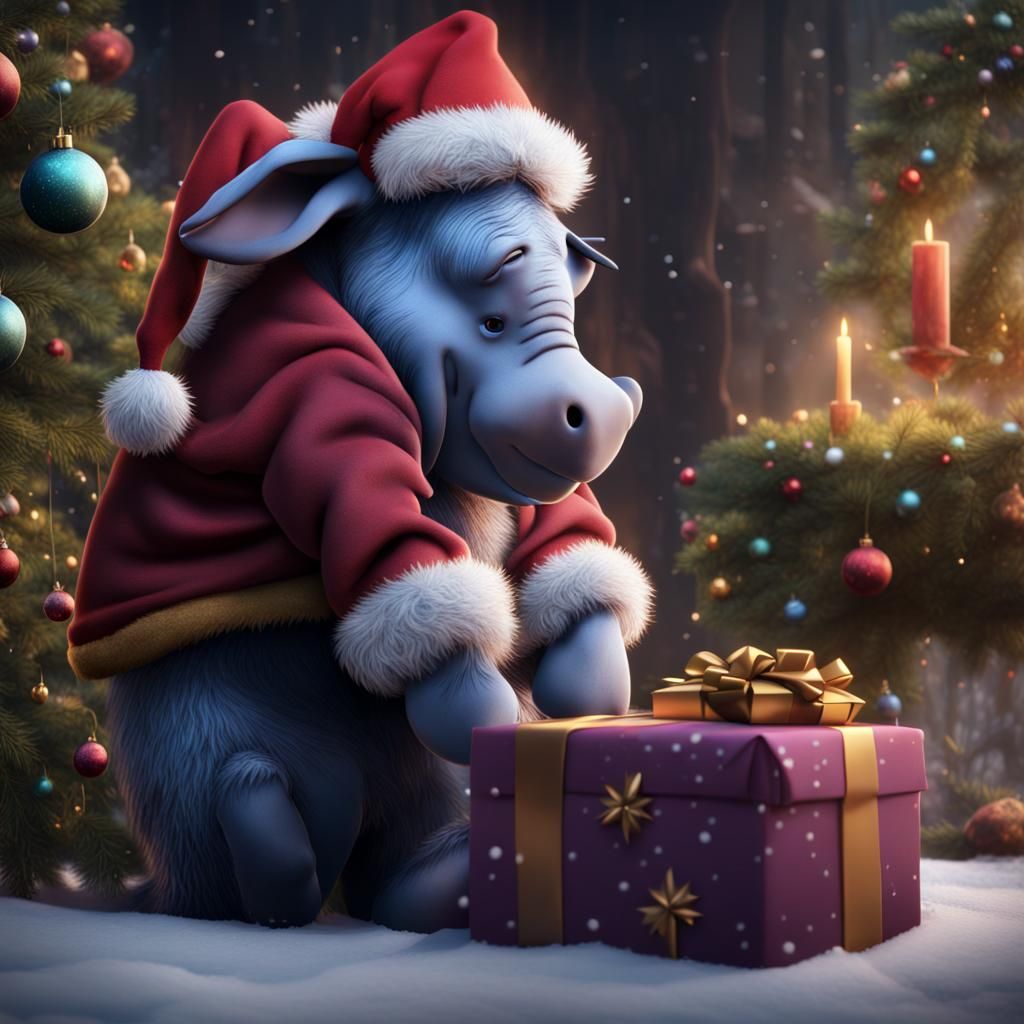 Make your own heartwarming Christmas images with Eeyore using our free AI generator.