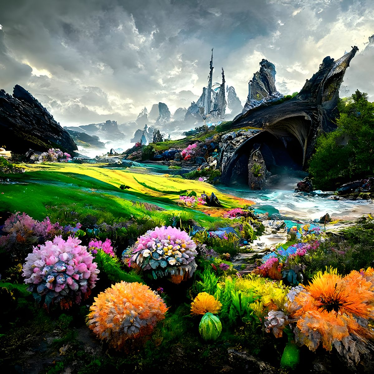 Design your own magical fantasy flowers and landscapes for free with our AI image generator!