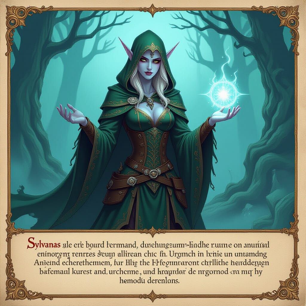 This image depicts a Sylvanas elf spell amidst Eldritch horror elements. The scene evokes a philosophical exploration of nightmares, reflecting alchemical dream hypnosis and Bloodborne-inspired lore in a dark fantasy style.