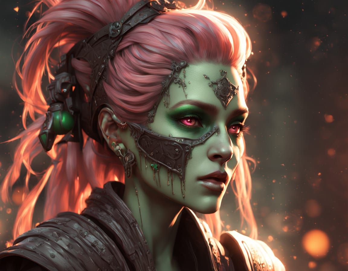This image shows Gwen Tennyson as a mummified witch with glowing eyes and vibrant hair. The anime-style 3D art features soft lighting, intricate details, and a dark fantasy aesthetic.