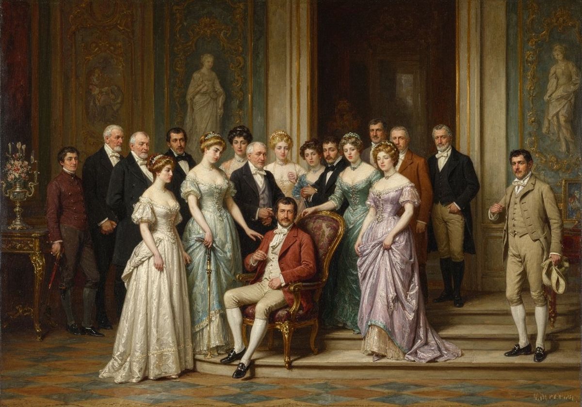 A striking oil painting in a classic fine art style. The artwork demonstrates portraiture techniques with rich colors and intricate details reminiscent of historical masters.