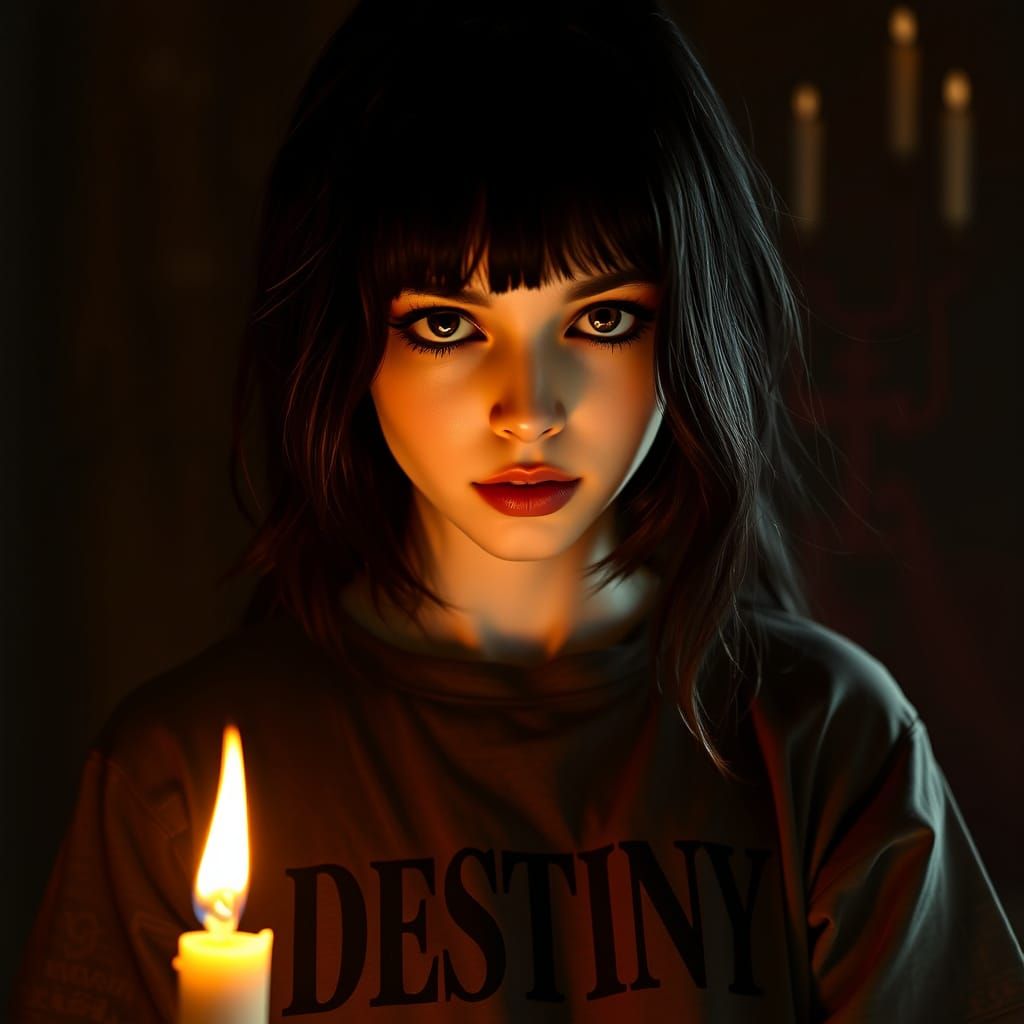A gothic teenager with dark hair poses dramatically in chiaroscuro lighting. This portrait evokes the style of old masters and blends traditional and digital media. The image has hyper-realistic, high-definition quality.