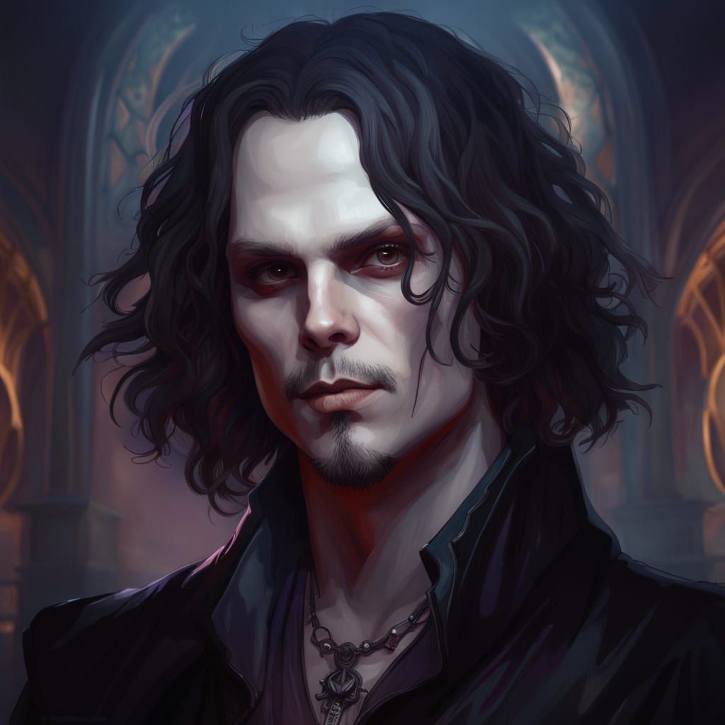 A gothic vampire portrait in 8k resolution. This image displays dynamic lighting and intricate details, realized with triadic colors and volumetric lighting, creating a visually stunning piece.