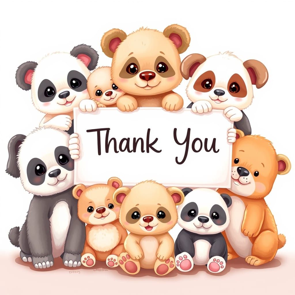 This image shows a group of cute baby animals holding a sign. The illustration uses soft, vibrant colors and a polished style to create a cheerful and appreciative tone.