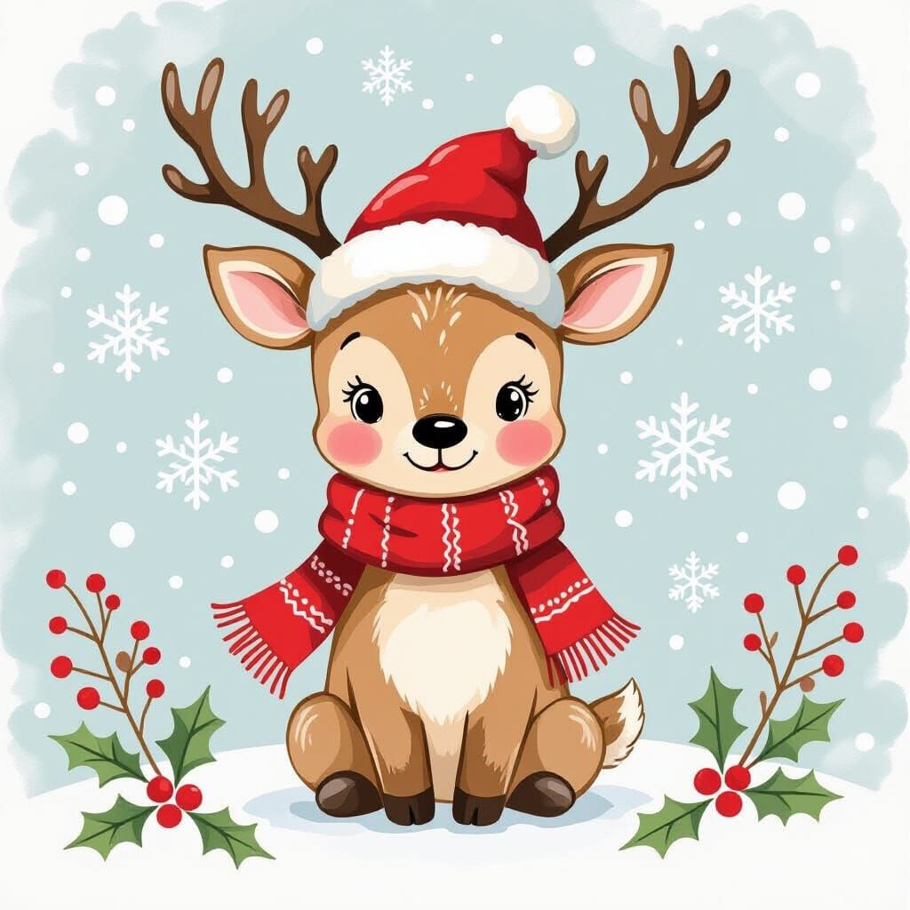 Create your own cute Christmas reindeer illustrations with our free AI image generator. It's easy and fun!