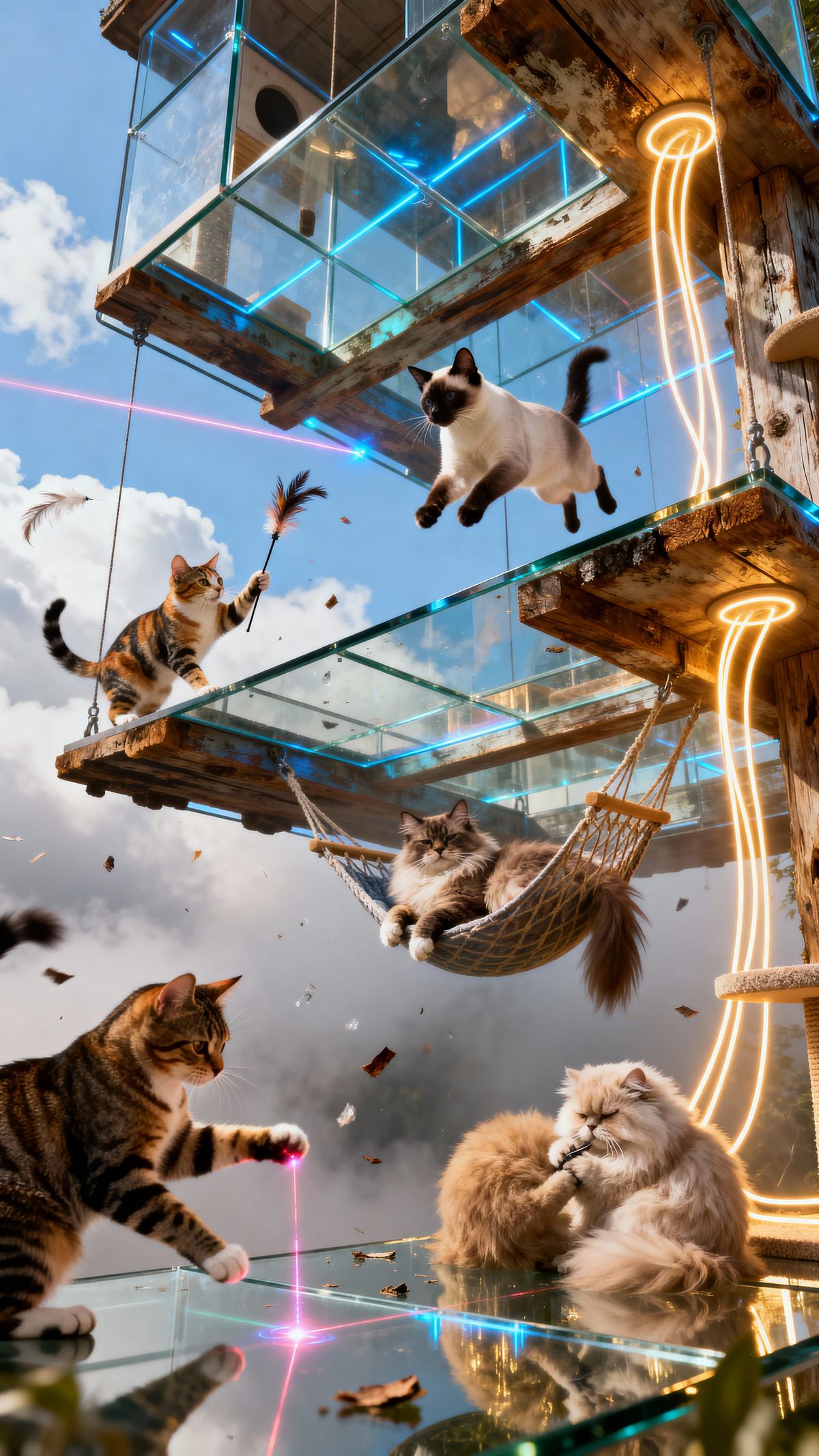 Design unique multi-level catios for your feline friends. Our free AI tool makes it easy and fun to bring your ideas to life.