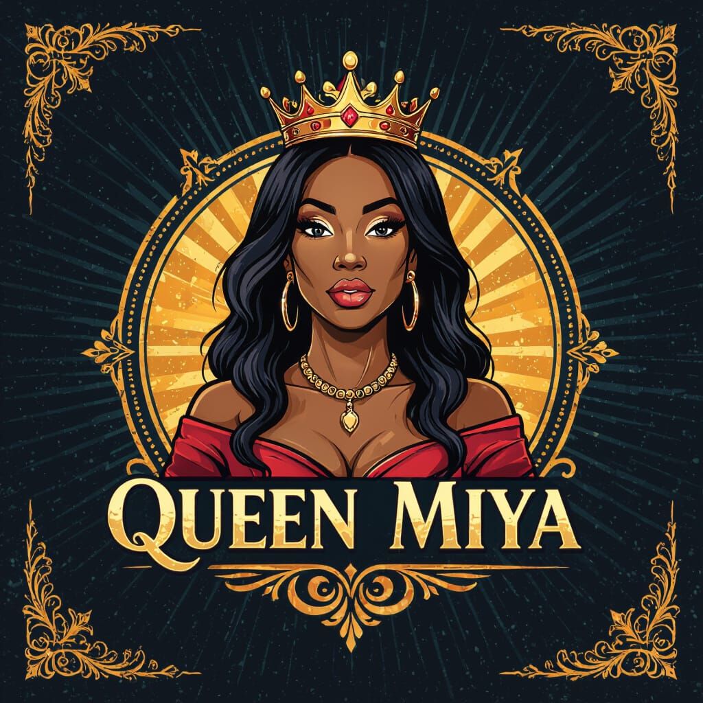 This image features a logo for a female rapper named Queen Miya, designed for an album cover. It's a bold and modern design suitable for music-related branding.