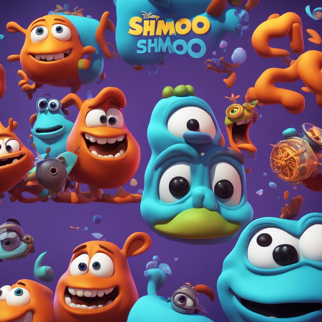 This image shows a Shmoo character in a 3D render. The character is reminiscent of Pixar and Disney concept art, with bright colors, radial gradients, and cinematic post-processing.