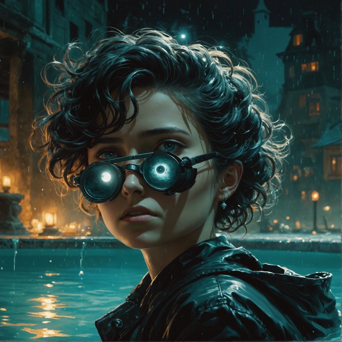 This image shows a melancholic scene of tears falling into a moonlit pool, evoking a sense of sadness and isolation in a sinister style.