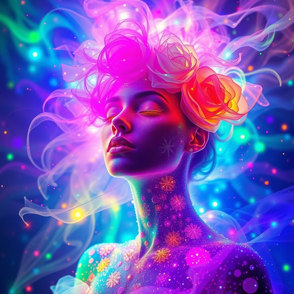 This image showcases a kaleidoscope of colors and lights in a dreamlike setting, evoking a sense of wonder and beauty.