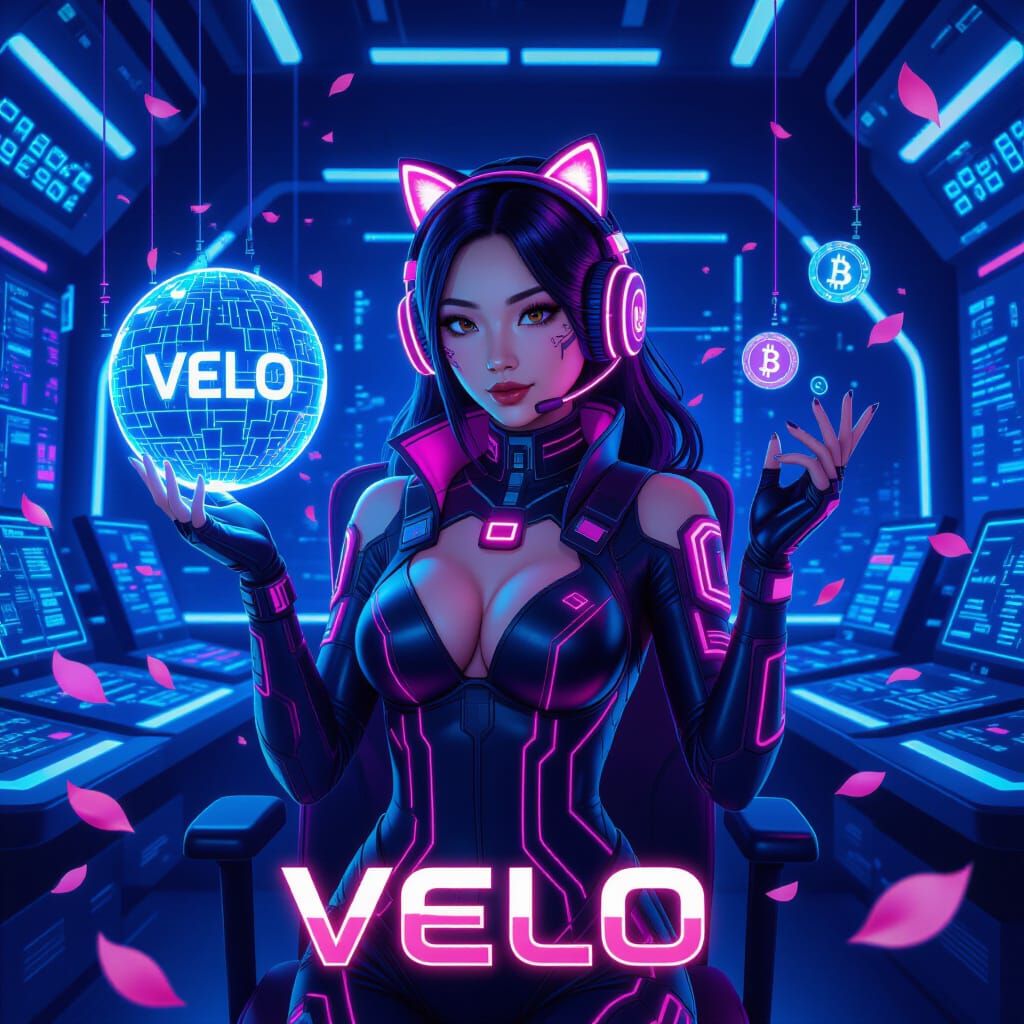 A vibrant image of a confident gamer in a futuristic control room filled with neon lights, sleek panels, and digital effects. The artwork blends cyber-kawaii and anime realism.