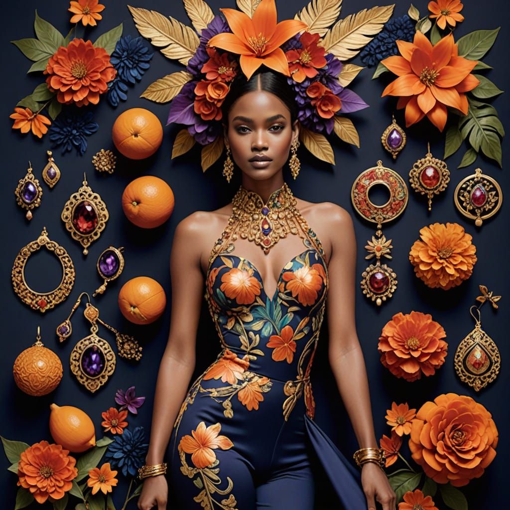 This image showcases a vibrant background of psychedelic colors in floral and abstract patterns, evoking tropical heat and cosmic mystery with bold saturation.