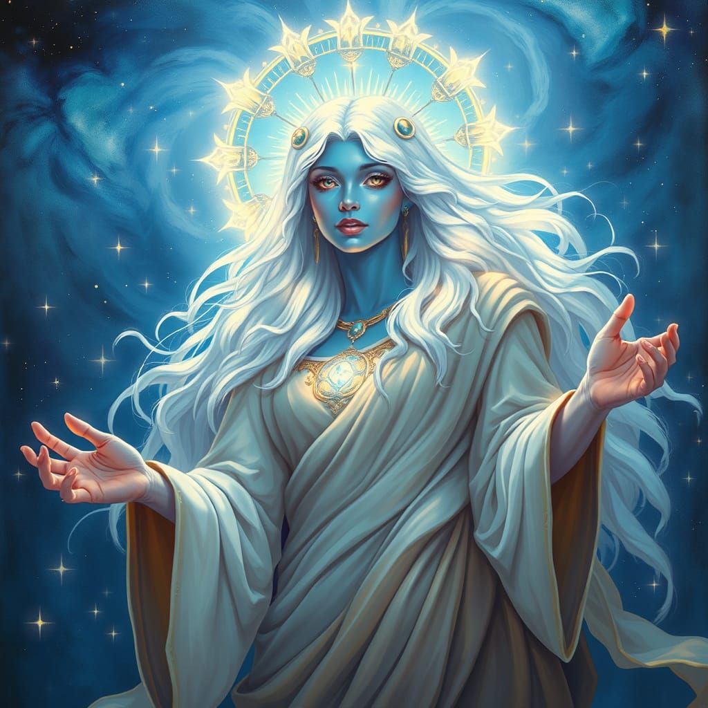 Design your own goddess artwork with our free AI image generator, featuring celestial and mythological themes