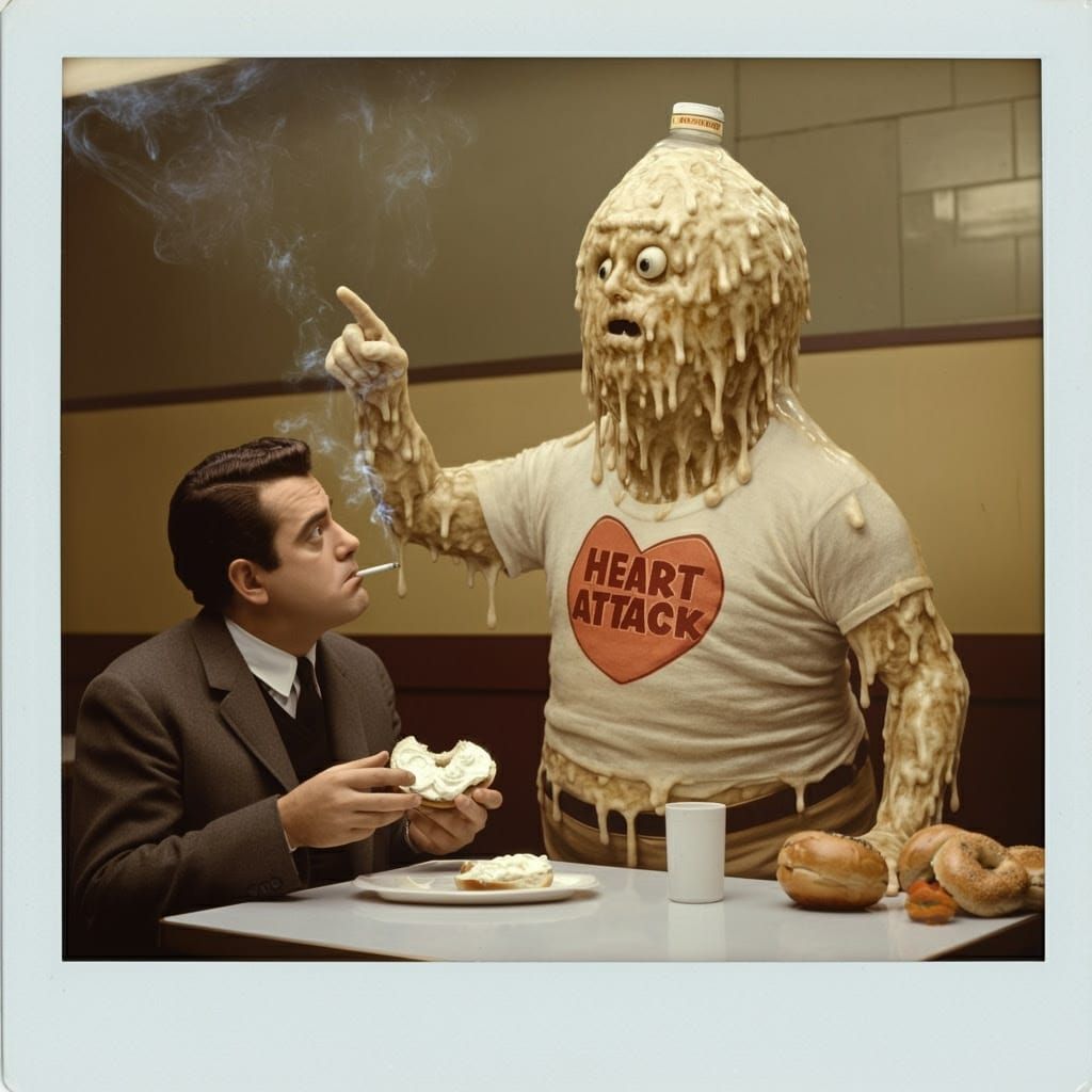 Ok, you get up in the morning and light a cigarette, then eat a bagel piled with cream cheese, probably have a BLT for lunch, then eat a McDouble for dinner?