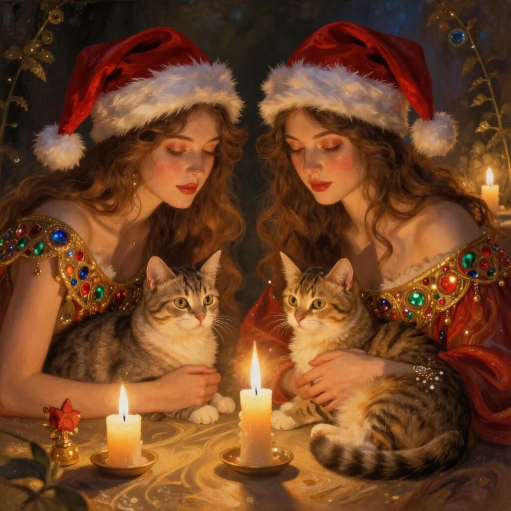 Generate beautiful women images with cats, candles, and Santa hats. Free and easy AI art creation.