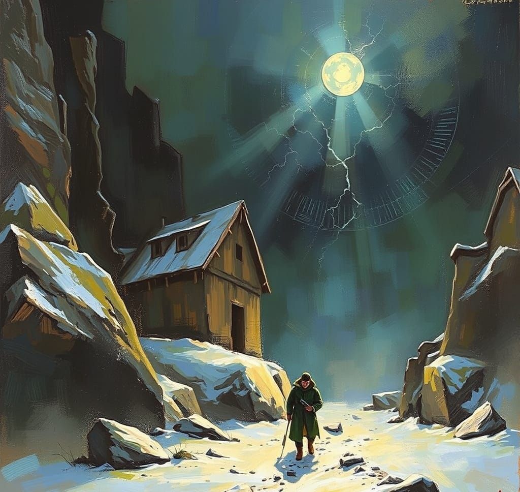 A surreal landscape featuring otherworldly architecture and strange organic forms. The image evokes a sense of mystery and dread, reminiscent of visionary surrealist painting.