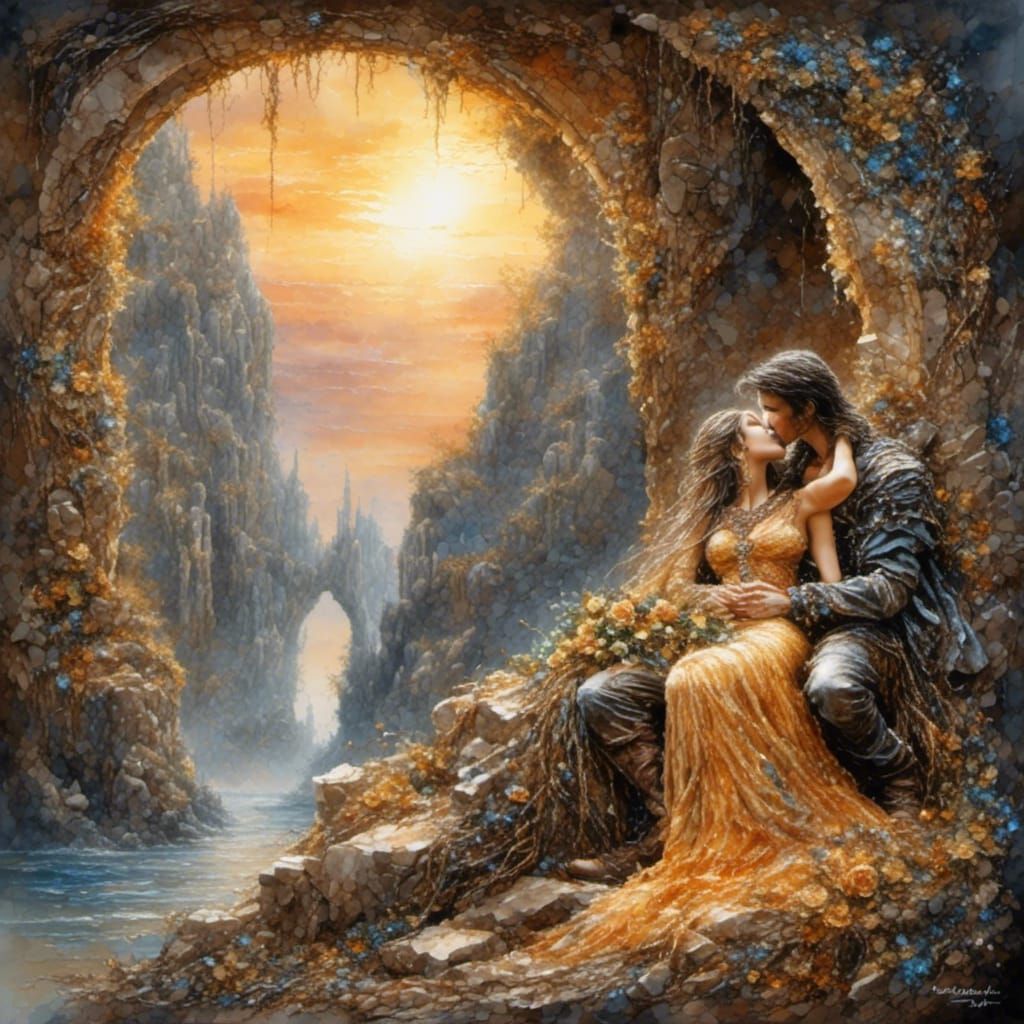 Create your own romantic images of lovers kissing with our free and easy AI image generator.