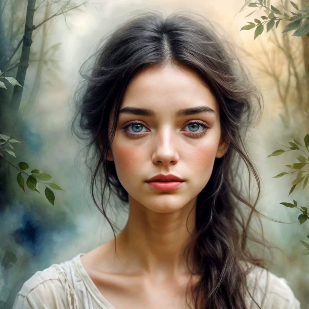 Easily generate stunning watercolor portraits of serene women with our free AI image maker