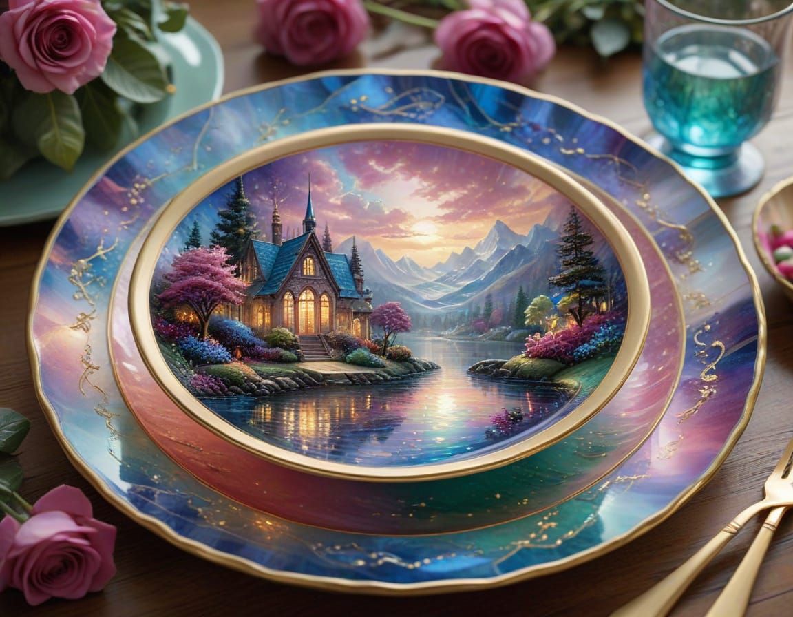Make your own unique stained glass fine china dinner dishes with our free and easy AI image generator. Endless possibilities await!