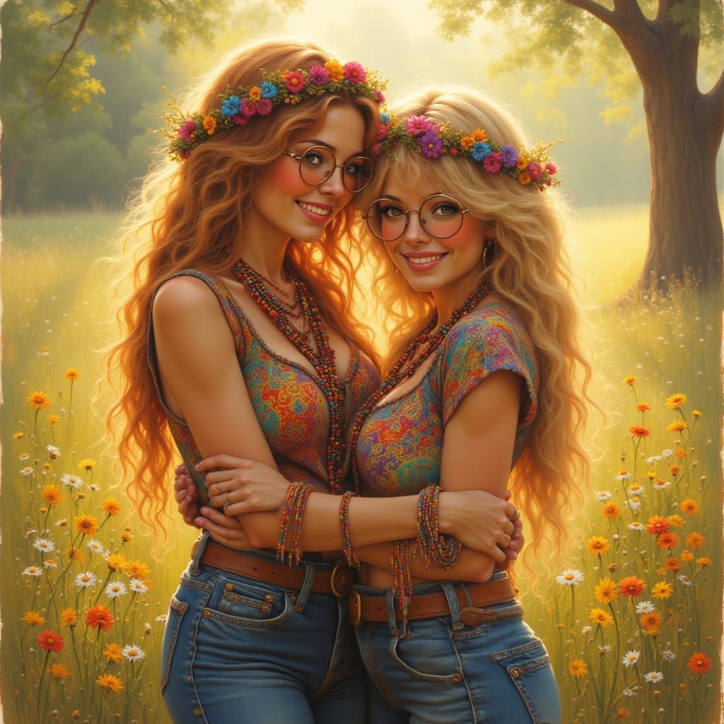 Generate unique images of hippy girls and couples with our easy-to-use AI tool. Free to try!