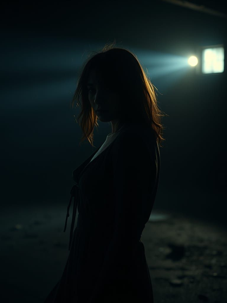 A haunting image of a lone figure lost in thought, set against a dark, desolate backdrop, bathed in melancholic, cinematic lighting. Moody, volumetric shadows and subtle highlights create a sense of depth and atmosphere, reminiscent of editorial photography and 70mm film stills.