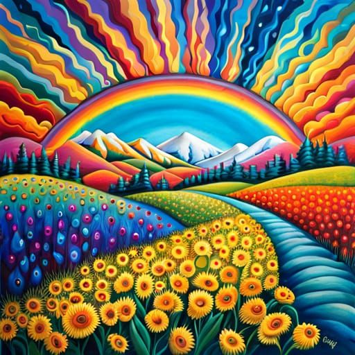 Create your own unique rainbow sun images with our free and easy AI image generator!