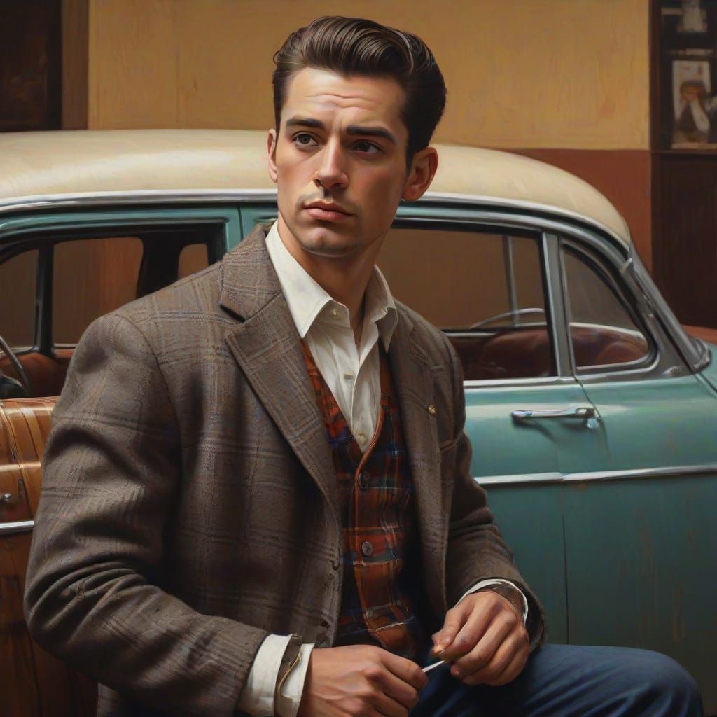 Create your own images in the cool, clean style of 1950s menswear with our free AI image generator.