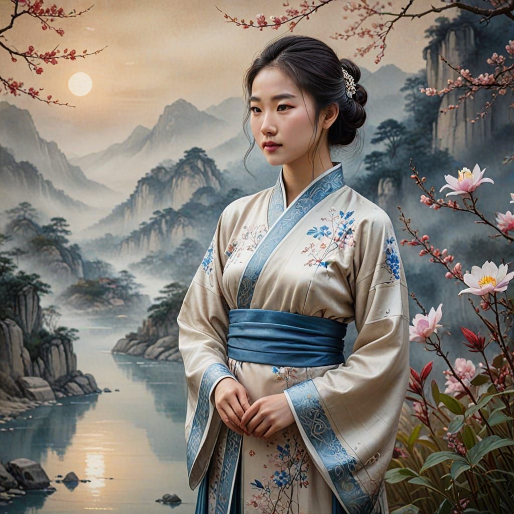 Easily generate your own beautiful Chinese paintings featuring stylish women and sophisticated flowers with our free AI tool.
